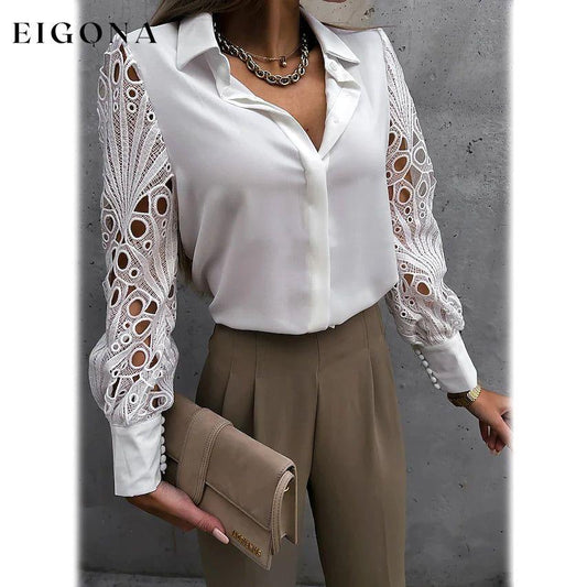 Camisa feminina de manga comprida com recorte de renda e botões