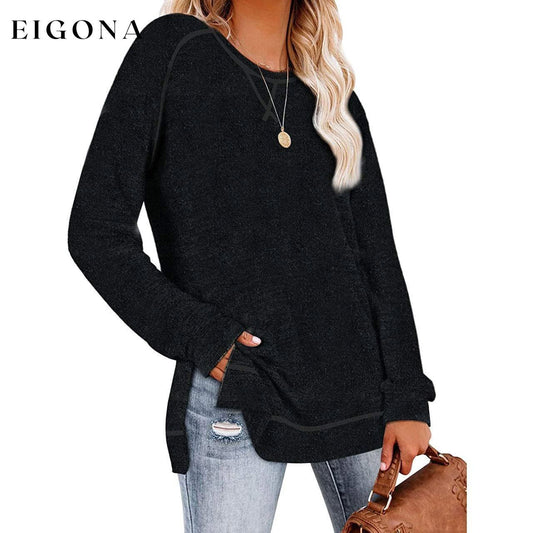 Túnica feminina manga comprida solta casual outono pulôver com fenda lateral