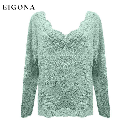 Suéter pulôver feminino de malha de cor sólida casual acrílico manga comprida suéter solto cardigans com decote em V