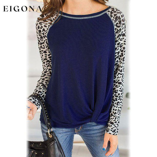 Top feminino de manga comprida com estampa de leopardo