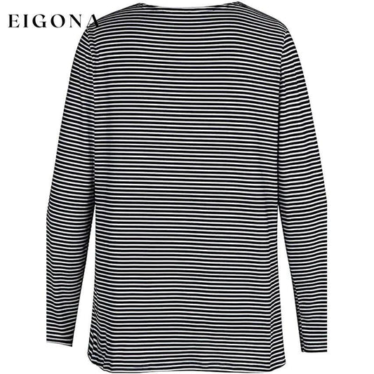 Camiseta feminina túnica de Halloween listrada gato 3D desenho animado manga comprida estampa gola redonda