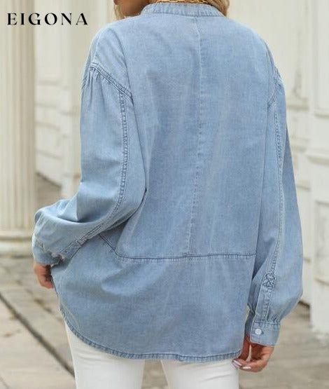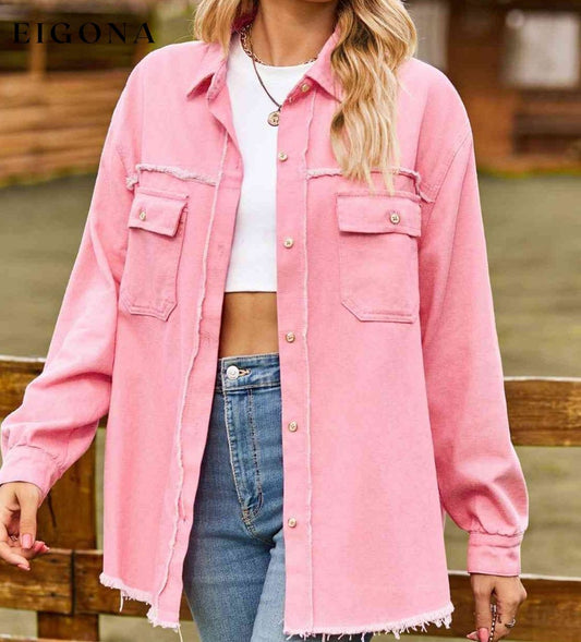 Jaqueta jeans de manga comprida com bainha crua e botão