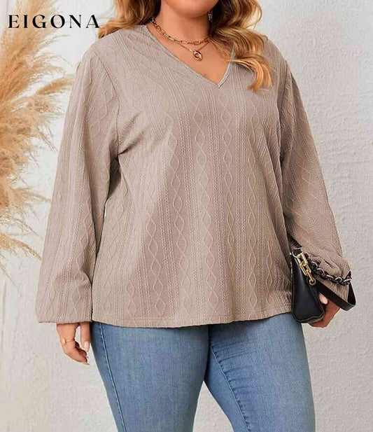 Blusa plus size com detalhe de renda e decote em V manga comprida