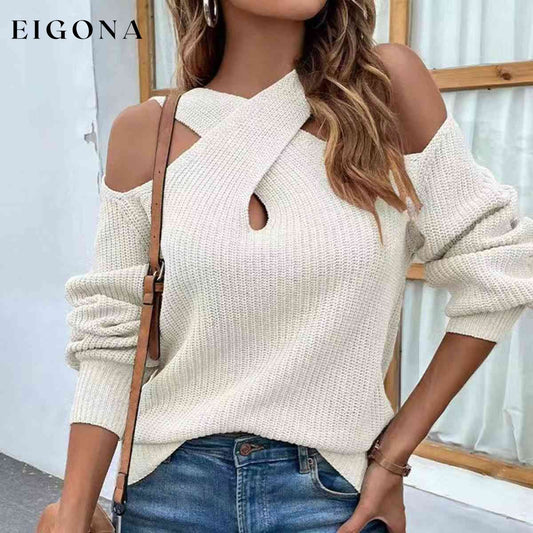 Novo sexy slim fit inclinado ombro lapela manga comprida tricotado suéter de cor sólida