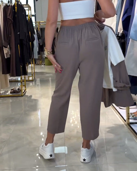 Solid-Color High-Waisted Drawstring Casual Pants